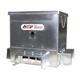 The ASF 150lb Quail Feeder 765665501018 is an automated feeder designed to feed and protect quail while minimizing feed waste to other animals. This feeder holds up to 150lbs of feed and is constructed from durable materials to withstand outdoor conditions. It promotes muscle growth, health, and feathering in game birds, making it an essential tool for increasing your bird population