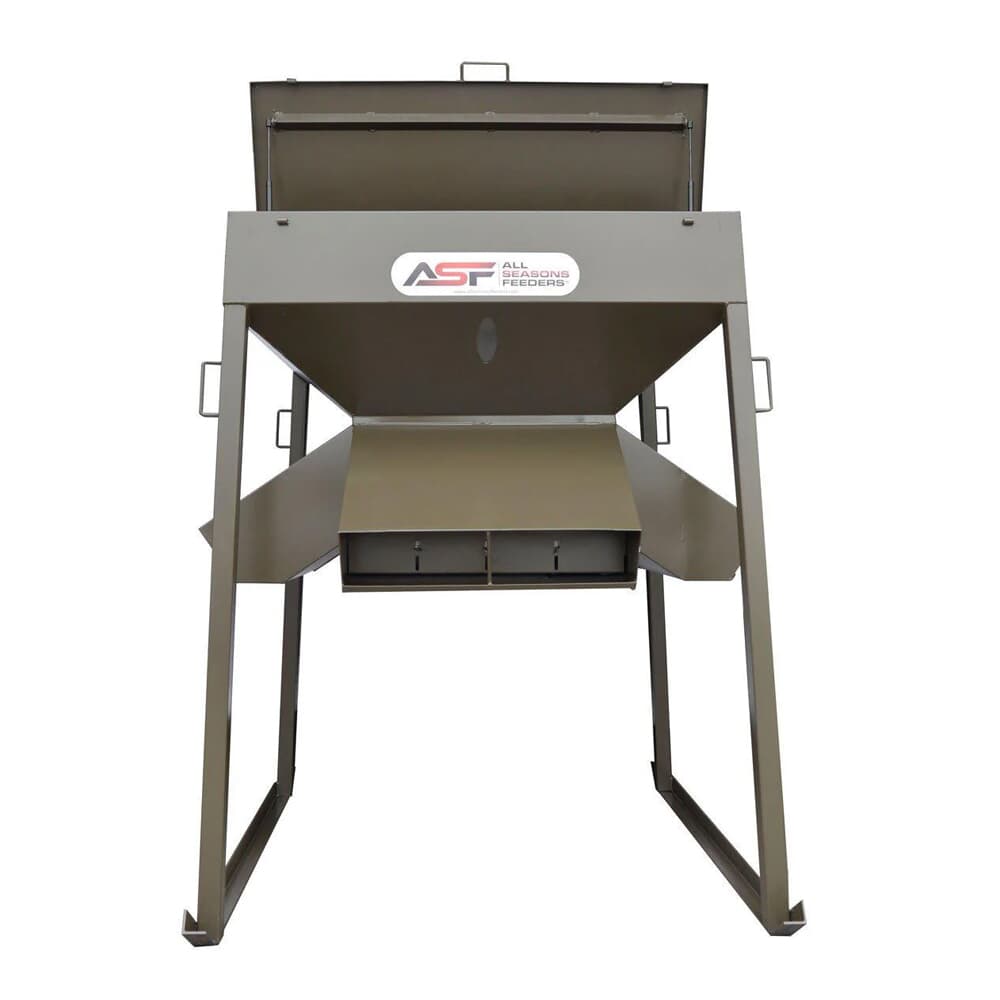 The ASF Low Profile 2000lb Protein Feeder w/Skids offers the same functionality as the Pro Evo design, with a low-profile design for easier filling. This feeder features a large 2,000lb capacity to feed more target game at one time, and skids for easy placement and stability. The weather and varmint-resistant construction ensures durability and reliable performance in various conditions, making it an ideal choice for serious wildlife management