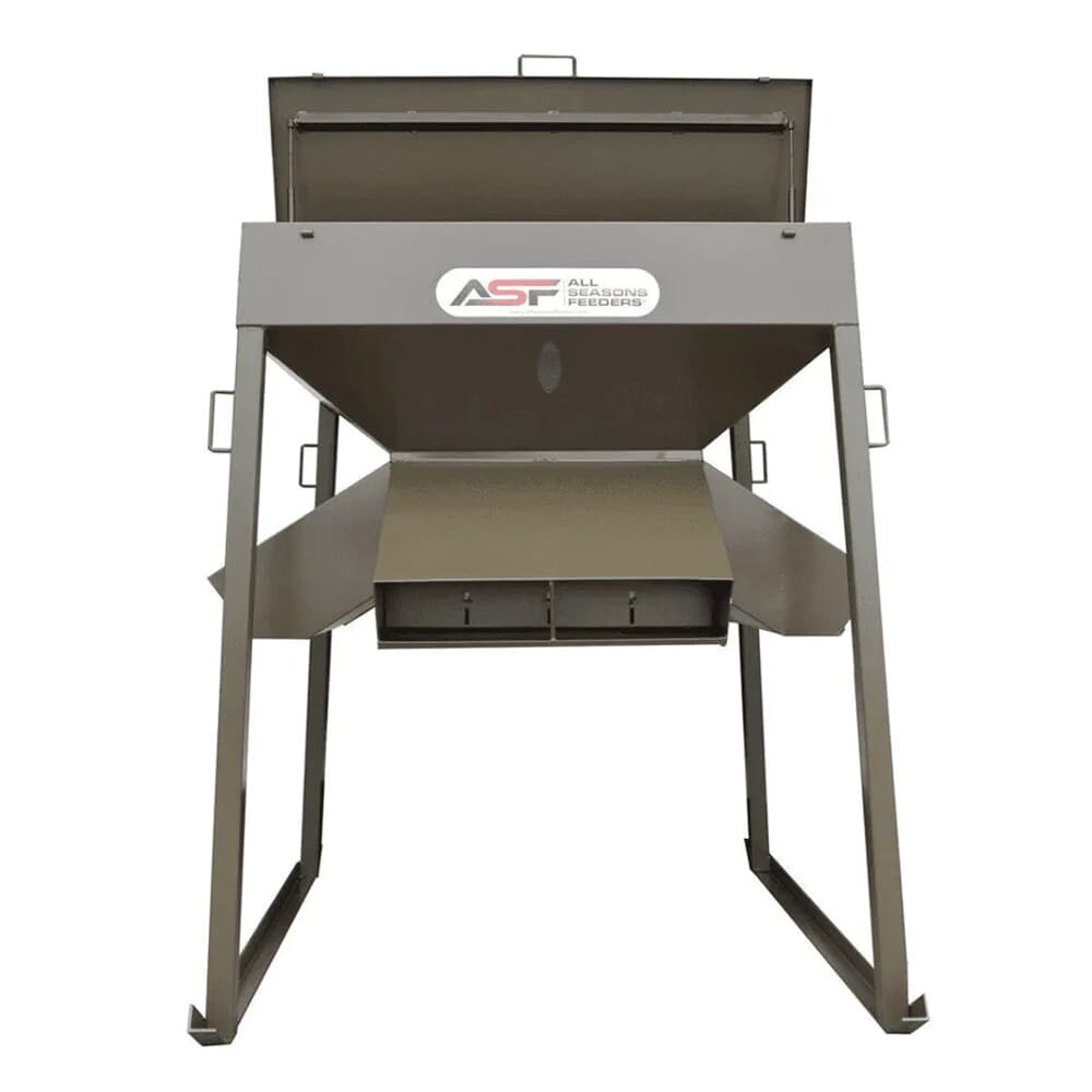 The ASF Low Profile 3000lb Protein Feeder w/Skids is designed for ease of use and maximum capacity. This feeder features a low-profile design for easier filling and skids for easy placement and stability. It offers the same functionality as the Pro Evo design, with a large 3,000lb capacity to feed more target game at one time. The weather and varmint-resistant construction ensures durability and reliable performance in various conditions