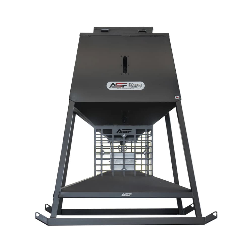 The ASF Stand & Fill 1000lb Heavy Duty Broadcast Feeder is designed for ease of use and durability. This feeder allows you to fill it from the ground, eliminating the need for ladders. It includes a 12v solar panel, 12v battery, and THE-TIMER for efficient operation. The heavy-duty construction ensures it can withstand the abuse of large animals, while the built-in bottom inverted funnel prevents feed from falling under the feeder. Its low-profile design and skids make it easy to relocate, providing a practical and reliable feeding solution