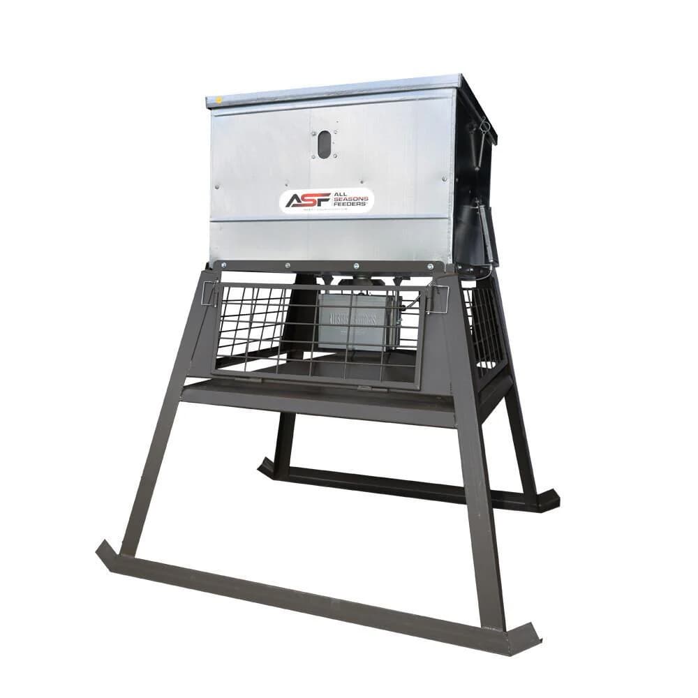 The ASF Stand & Fill 300lb Broadcast Feeder w/cage offers a safer and more convenient way to fill your feeder from the ground. This feeder maintains the quality and durability of traditional models while eliminating the need for ladders. It includes a built-in bottom funnel to prevent feed from falling under the feeder, a heavy-duty cage to protect components, and a 12v solar panel and battery for efficient operation. Its low-profile design allows for easy setup and relocation