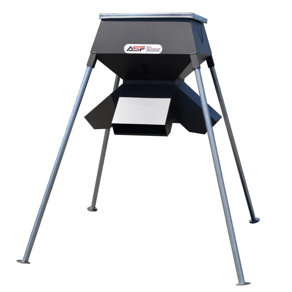 The ASF Stand & Fill 500lb Protein Feeder offers the quality and durability of ASF evolution protein feeders with a low-profile design for safer and more convenient filling. This feeder features a 16-gauge steel construction, elongated sight glass, and a Protein Evo head design to keep varmints and weather out. The skids welded to the legs make it easy to relocate, ensuring long-lasting performance and ease of use. It includes adjustable baffles to regulate feed flow, making it an efficient and reliable choice for wildlife management