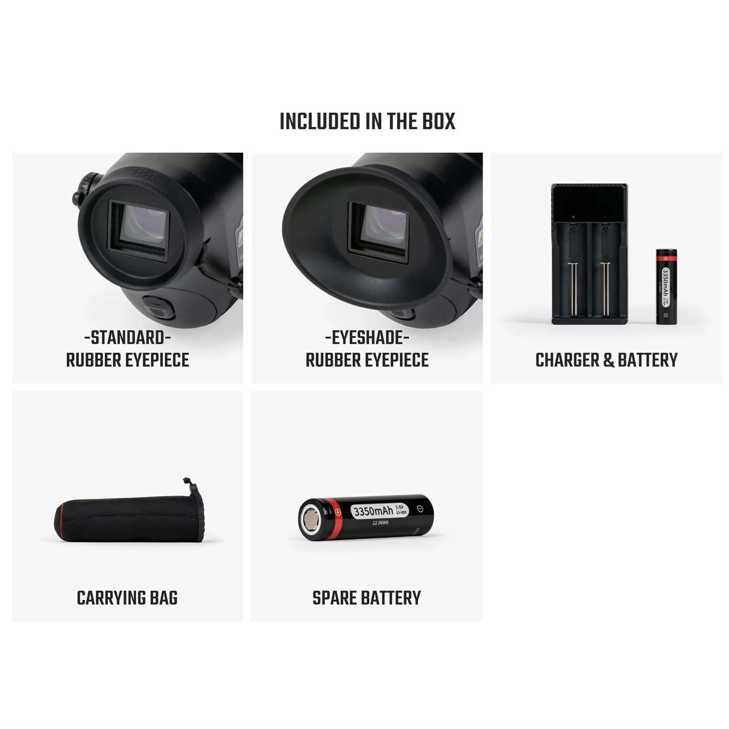 The Cronus ATS 35ML-400 Monocular series is Athlon’s first entry into the thermal optics market, offering the same quality and affordability that all Athlon optics are known for. It comes equipped with a high-sensitivity thermal sensor that delivers a 12μm pixel pitch as well as a <50mK NETD rating. This provides a clean image with maximum definition, and allows the Cronus ATS to pick up on the smallest heat signatures up to 3000 yards away. The combination of clarity and long range detection makes the Cronus ATS Thermal Monocular ideal for nighttime wildlife observation, hunting, and security applications. Heat signatures are viewable on 5 color palettes – White Hot, Black Hot,Red Hot, Iron Red, and Blue Hot. The abundance of color palette options is perfect for adapting to different environments, which is further enhanced by the adjustable brightness and contrast. Heat signatures are viewable on a high-resolution OLED Display, and images and videos can be streamed directly to Apple/Android devices via the Athlon Thermal app.