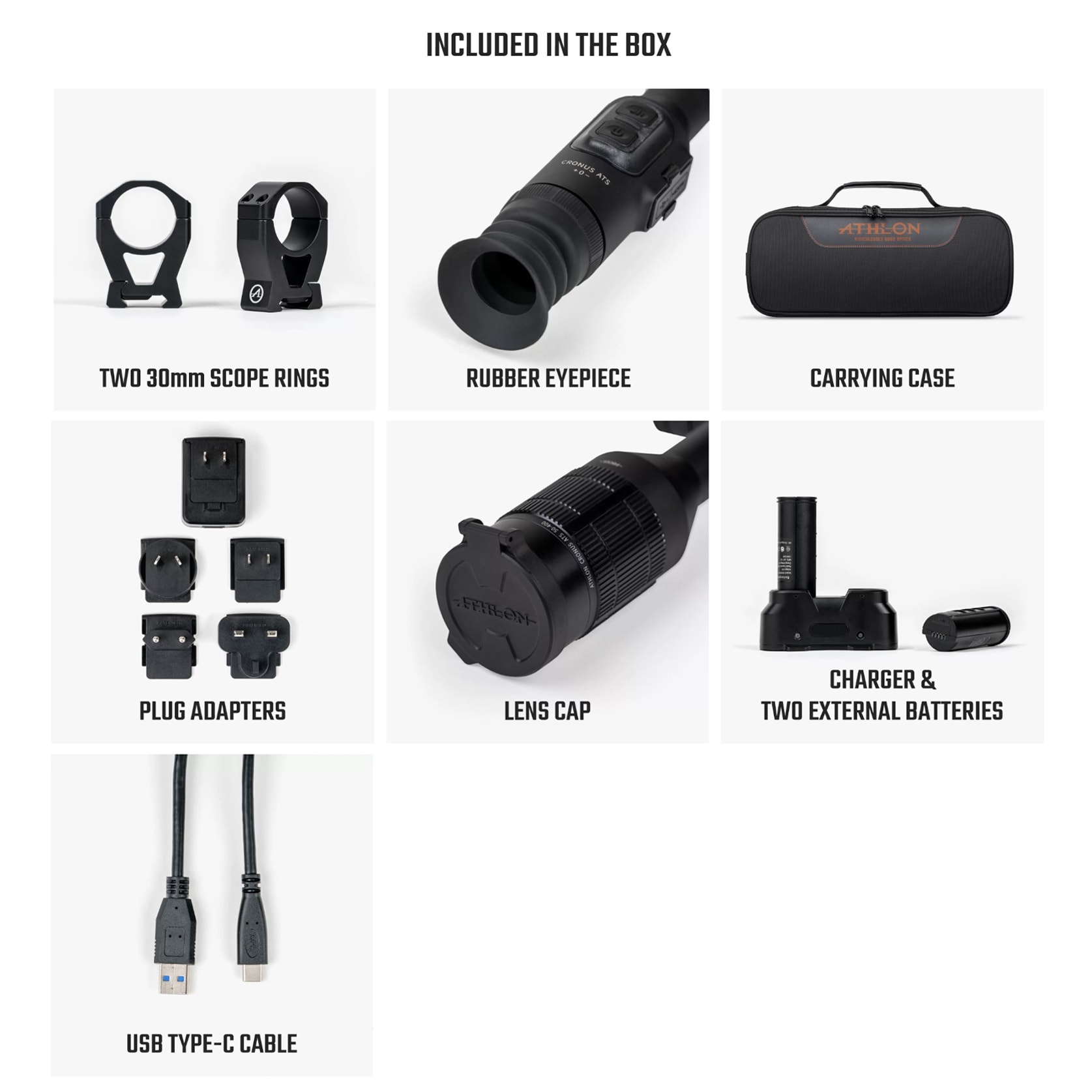The Cronus ATS Thermal Riflescope series is Athlon’s first entry into the thermal optics market, offering the same quality and affordability that all Athlon optics are known for. Available in multiple configurations, the Cronus ATS comes equipped with a high-sensitivity thermal sensor that delivers a 12μm pixel pitch as well as a <25mK NETD rating. This provides a clean image with maximum definition, and allows the Cronus ATS to pick up on the smallest heat signatures from well over 2000 yards away (well over 3000 yards on the more powerful models). Heat signatures are viewable on six color palettes – White Hot, Black Hot, Adjustable Red Hot, Green Hot, Iron Red, and Blue Hot. The abundance of color palette options is perfect for adapting to different environments, which is further enhanced by the adjustable brightness and contrast. Heat signatures are viewable on a high-resolution OLED Display, and images and videos can be streamed directly to Apple/Android devices via the Athlon Thermal app. The Cronus ATS also features the innovative AUTO-SHOT function, which automatically records the moment before and after the shot is taken when recoil is detected. In addition, the Cronus ATS offers cross-platform compatibility thanks to a selection of 10 zeroing profiles and 10 built-in reticles.