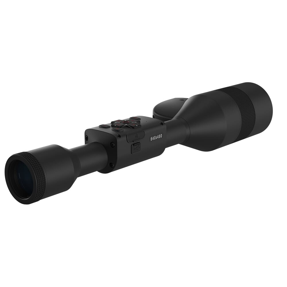 ATN's ThOR 5 640 LRF series of thermal riflescopes deliver next generation thermal imaging performance with the feel a traditional daytime optic. The ThOR 5 640 is available in 2-15x, 3-24x, 4-32x, and 5-40x configurations, each of which is outfitted with a ultra-sensitive Gen 5 thermal detector. This allows the 2-15x version to detect heat signatures from 1250 meters away, the 3-24x version from 1600 meters away, the 4-32x from 2150 meters away, and the 5-40x version from 3300 meters away. The ThOR 5 640 LRF attaches to the host weapon using industry standard 30mm rings, allowing the ThOR 5 640 to be used on virtually any platform and allows the user to tap into the vast market of ring and mount options. The ThOR 5 640 is video capable, and uses recoil activated recording to provide video 10 second before and 5 seconds after the shot is taken. The ThOR 5 LRF 640 comes standard with an integrated laser rangefinder, and features a ballistic calculator to accommodate bullet drop at extended ranges. Additionally, the ThOR 5 640 LRF is compatible with compatible with ATN's Reticle Editor, allowing the user to create custom reticles to meet individual requirements for certain platforms and cartridges.