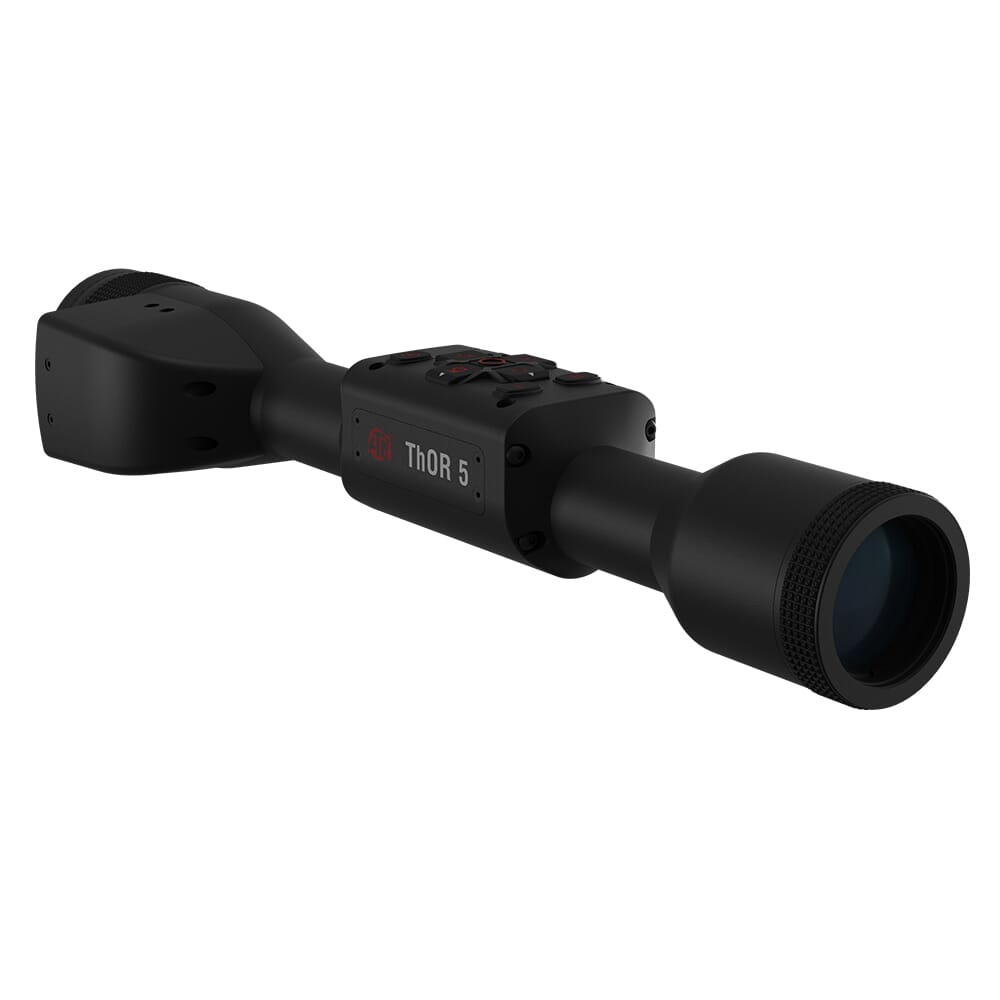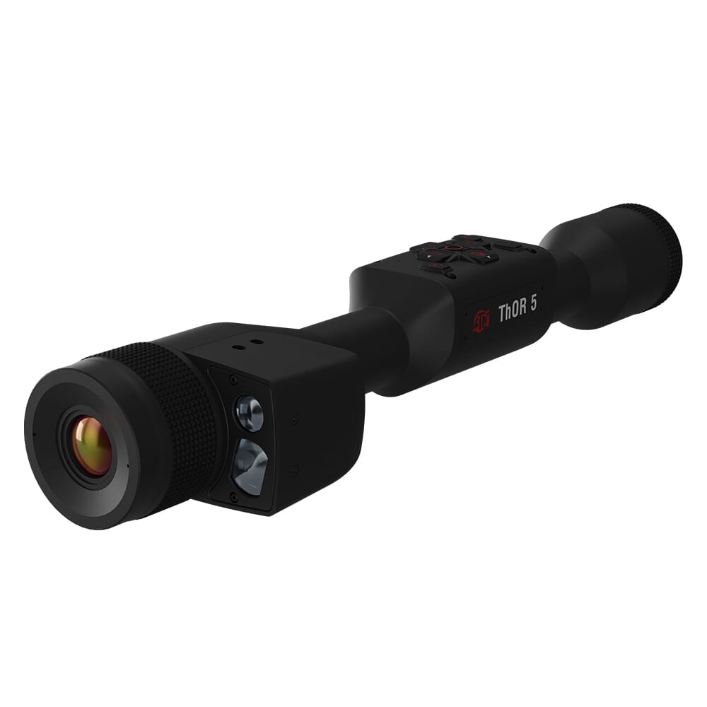 ATN's ThOR 5 640 LRF series of thermal riflescopes deliver next generation thermal imaging performance with the feel a traditional daytime optic. The ThOR 5 640 is available in 2-15x, 3-24x, 4-32x, and 5-40x configurations, each of which is outfitted with a ultra-sensitive Gen 5 thermal detector. This allows the 2-15x version to detect heat signatures from 1250 meters away, the 3-24x version from 1600 meters away, the 4-32x from 2150 meters away, and the 5-40x version from 3300 meters away. The ThOR 5 640 LRF attaches to the host weapon using industry standard 30mm rings, allowing the ThOR 5 640 to be used on virtually any platform and allows the user to tap into the vast market of ring and mount options. The ThOR 5 640 is video capable, and uses recoil activated recording to provide video 10 second before and 5 seconds after the shot is taken. The ThOR 5 LRF 640 comes standard with an integrated laser rangefinder, and features a ballistic calculator to accommodate bullet drop at extended ranges. Additionally, the ThOR 5 640 LRF is compatible with compatible with ATN's Reticle Editor, allowing the user to create custom reticles to meet individual requirements for certain platforms and cartridges.