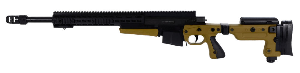 The 20 moa taper Picatinny rail is pinned and screwed to the action providing a standard interface for many optical systems. The match grade Bartlein 5R barrel is threaded deep into the action with a large diameter thread. The magazine is surface toughened, and finished with a multi-part anti-corrosive, anti-friction coating, the compact 10-round double row, military grade steel magazine combined with the revised chassis design makes loading faster and more positive without lifting the rifle.