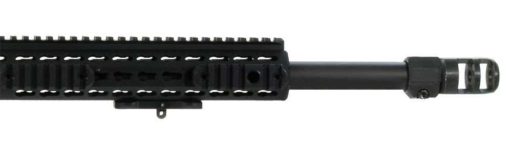 The forend rail system is a free floating tube forend 16" long featuring a keyhole slot system for quickly and securely attaching modular rail sections on to which a virtually unlimited variety of optical, ranging, support and carry options can be fitted.