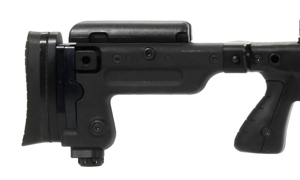 The 20 moa taper Picatinny rail is pinned and screwed to the action providing a standard interface for many optical systems. The match grade Bartlein 5R barrel is threaded deep into the action with a large diameter thread. The magazine is surface toughened, and finished with a multi-part anti-corrosive, anti-friction coating, the compact 10-round double row, military grade steel magazine combined with the revised chassis design makes loading faster and more positive without lifting the rifle.
