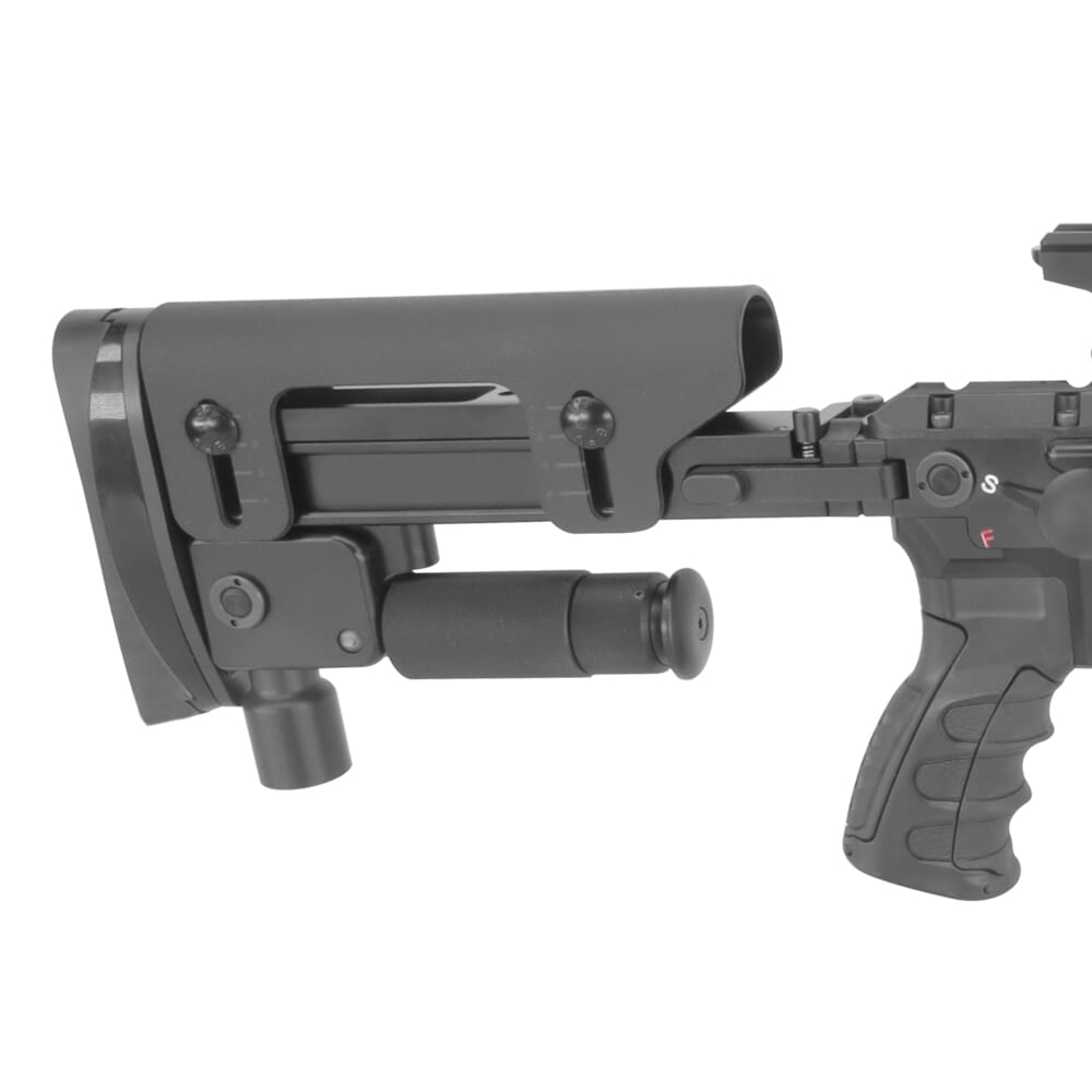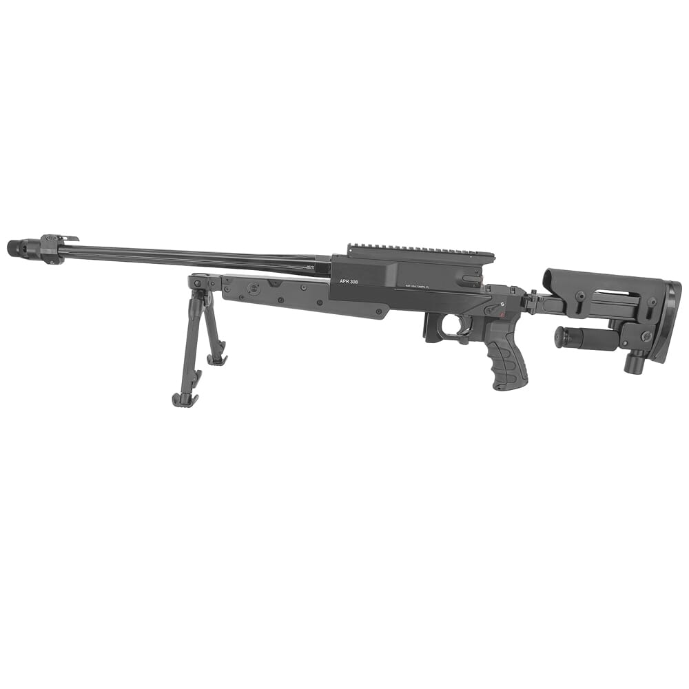 For greater accuracy and user adaptability, the ARP308 is equipped with a folding stock with an adjustable butt plate and length-of-pull spacer system, as well as a fully adjustable cheek-rest. The stock’s ability to be modified allows the APR308 to be adapted to virtually any shooter. In addition, the APR308’s barrel is free floating and cold hammer forged with a service life of 7000 rounds. The barrel also comes equipped with a factory provided muzzle brake, which is rated to reduce recoil by 40% and serves as the mounting point for B&T quick-detach sound suppressor.