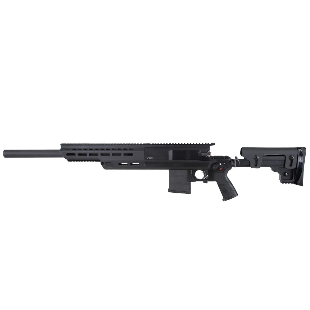 The APR8.6’s all-metal lower receiver essentially serves as a chassis to which all other components of the rifle are assembled or attached. This chassis also houses the upper receiver, and the contact surface between the upper and lower receiver serves as an unconventional bedding surface. The upper receiver itself is composed of the barrel, fire control group, and bolt group. Cycling the bolt is remarkably smooth and only requires 60 degrees of rotation, allowing for faster follow-up shots. The trigger group on the other hand is part of a detachable module, featuring a two-stage trigger which can be adjusted for pull weight (3lbs – 5lbs) as well as a trigger path that can be externally adjusted without disassembly. For greater accuracy and user adaptability, the ARP8.6 is equipped with a folding stock with an adjustable butt plate and length-of-pull spacer system, as well as a fully adjustable cheek-rest. The stock’s ability to be modified allows the APR8.6 to be adapted to virtually any shooter.
