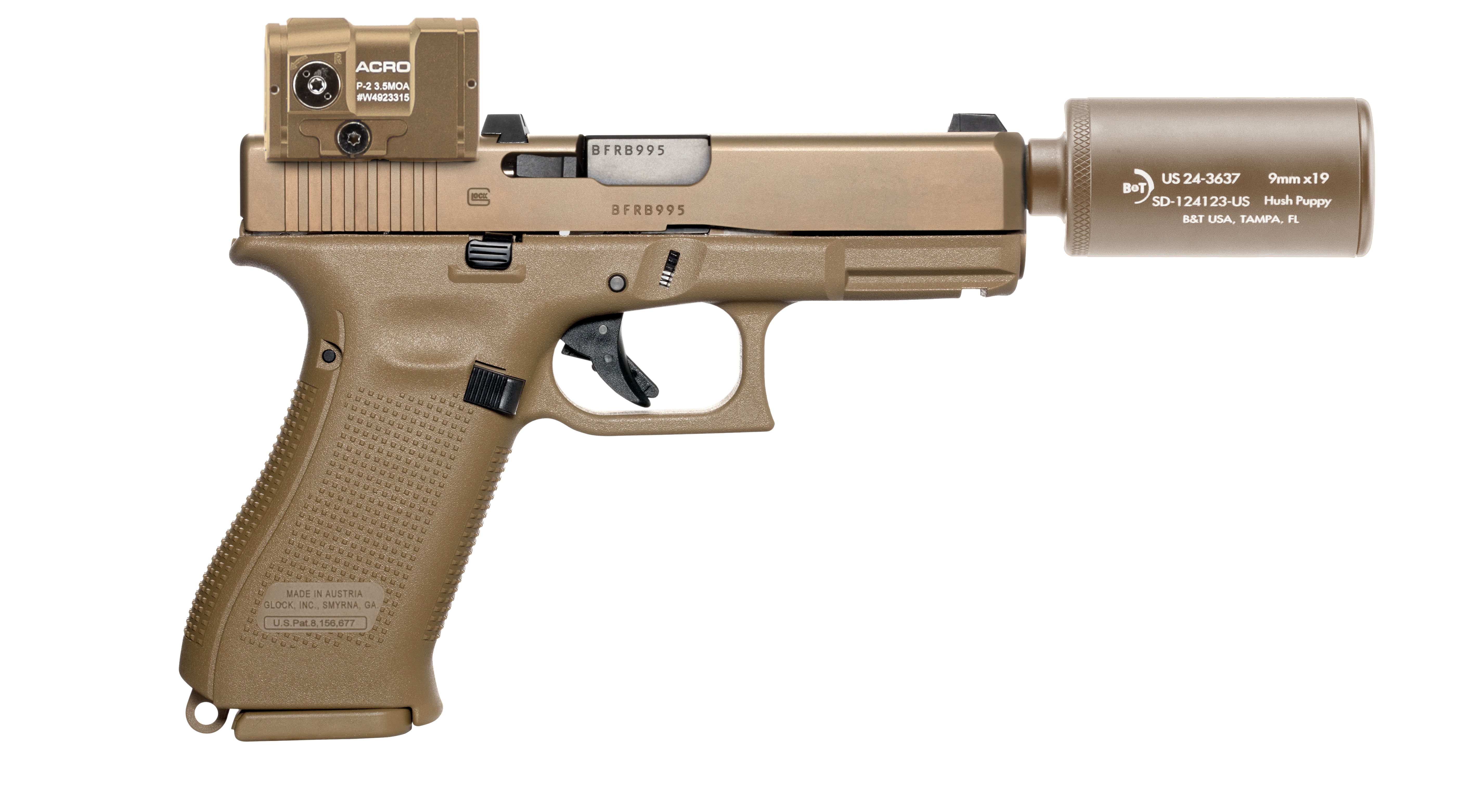 Where the Hush Puppy differs from bolt-action pistols is in its semiautomatic functionality, red-dot capability and LAM mounting options. With the flip of a switch, operators can lock the pistol’s slide closed for the lowest sound signature possible, while also preventing the ejection of a spent case. Flip the switch upward and the pistol is a fully functional semiautomatic Glock 19X.