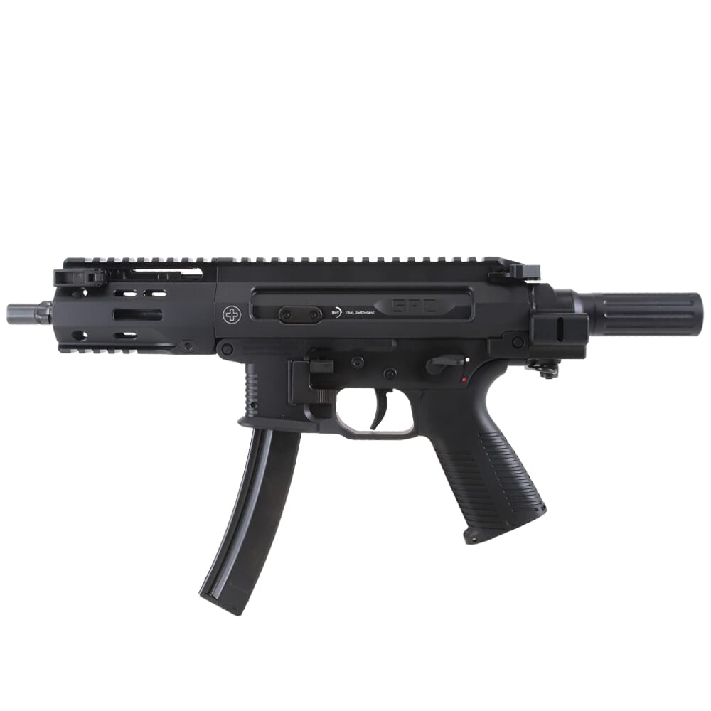 B&T breaks new ground with the SPC9 series of Personal Defense Weapons! This hybrid AR-platform incorporates a variety of different features found on many weapons from around the world, earning nicknames such as the “Frankengun”. One of its more notable features is the B&T designed hydraulic buffer system, which greatly mitigates recoil and enhances overall accuracy. Another prominent aspect of the SPC9 is the lower receiver which takes much of its design from the B&T APC9 series. This lower has been outfitted to accept the reliable H&K MP5 magazines, but is also interchangeable with lower receivers that accept B&T's polymer magazines. Other features of the SPC9 include two different charging handle systems: a classic AR-type charging handle and a non-reciprocating, foldable charging handle mounted above the barrel. Both of these systems are fully ambidextrous and allows the operator to use whichever system they prefer.
