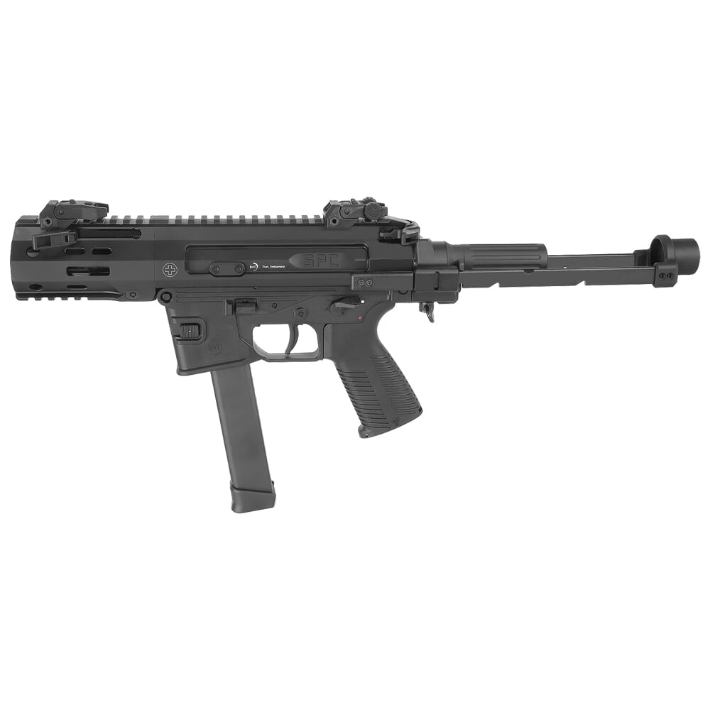B&T breaks new ground with the SPC9 series of Personal Defense Weapons! This hybrid AR-platform incorporates a variety of different features found on many weapons from around the world, earning nicknames such as the “Frankengun”. One of its more notable features is the B&T designed hydraulic buffer system, which greatly mitigates recoil and enhances overall accuracy. Another prominent aspect of the SPC9 is the lower receiver which takes much of its design from the B&T APC9 series. This lower accepts the reliable B&T polymer magazines, but versions that accept Glock and Sig 320 magazines are available as well. In addition, the SPC9 features two different charging handle systems: a classic AR-type charging handle and a non-reciprocating, foldable charging handle mounted above the barrel. Both of these systems are fully ambidextrous and allows the operator to use whichever system they prefer.