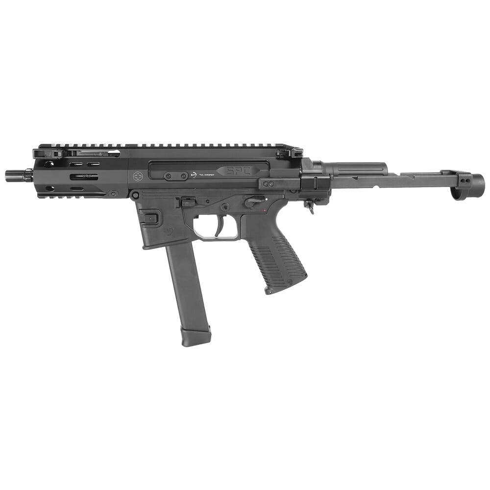 B&T breaks new ground with the SPC9 series of Personal Defense Weapons! This hybrid AR-platform incorporates a variety of different features found on many weapons from around the world, earning nicknames such as the “Frankengun”. One of its more notable features is the B&T designed hydraulic buffer system, which greatly mitigates recoil and enhances overall accuracy. Another prominent aspect of the SPC9 is the lower receiver which takes much of its design from the B&T APC9 series. This lower accepts the reliable B&T polymer magazines, but versions that accept Glock and Sig 320 magazines are available as well. In addition, the SPC9 features two different charging handle systems: a classic AR-type charging handle and a non-reciprocating, foldable charging handle mounted above the barrel. Both of these systems are fully ambidextrous and allows the operator to use whichever system they prefer.