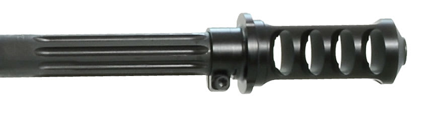 This Barrett M107A1 50 BMG rifle has an olive drab green Cerakote receiver and a 20" fluted barrel. Designed to be suppressor ready, this M107A1 has an all new bolt carrier group. Features include a four-port cylindrical muzzle brake, lightweight aluminum upper receiver with an integrated 27 MOA rail, thermal-guard cheek piece, titanium barrel key, fully chrome-lined bore, rail-mounted aluminum rear grip, and aluminum recoil buffer system.