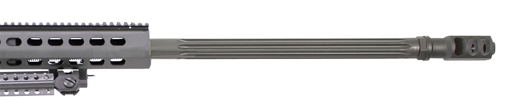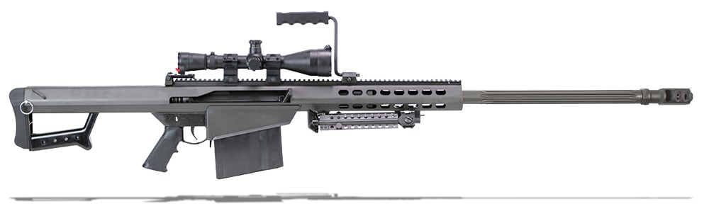 This Barrett 82A1 .416 Barrett rifle system comes with a Leupold Mark 4 M1 scope and Barrett ultra high rings. Other features include a Manganes phosphate receiver, 29" fluted barrel, 10 round magazine, carry handle, bipod, monopod, and hard carrying case. The 82A1 .416 Barrett has a cylindrical 3-port muzzle brake and functions on a recoil operated design.