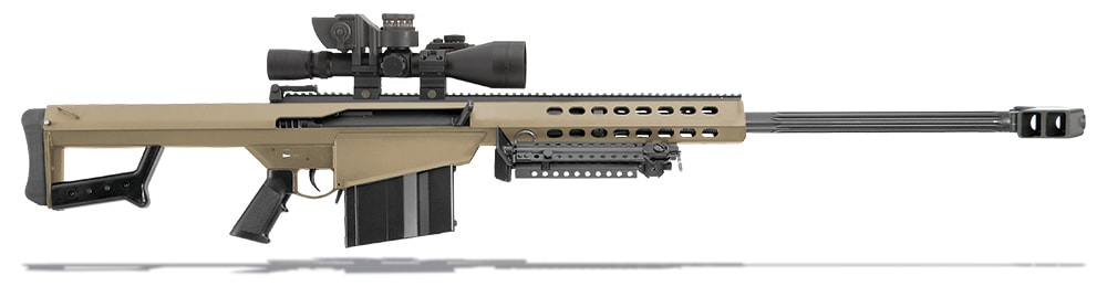 This Barrett 82A1 50 BMG rifle system comes with a Leupold Mark 4 M1 scope, BORS, and Barrett ultra high rings. Other features include a FDE Cerakote receiver, 29" fluted barrel, 10 round magazine, carry handle, bipod, monopod, and hard carrying case. The 82A1 .50 BMG has a 2-port arrow head muzzle brake and functions on a recoil operated design.