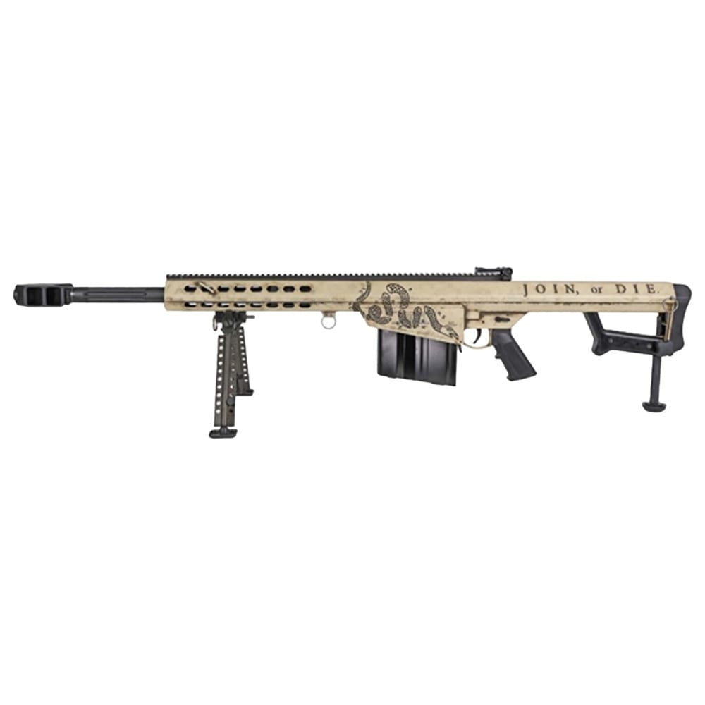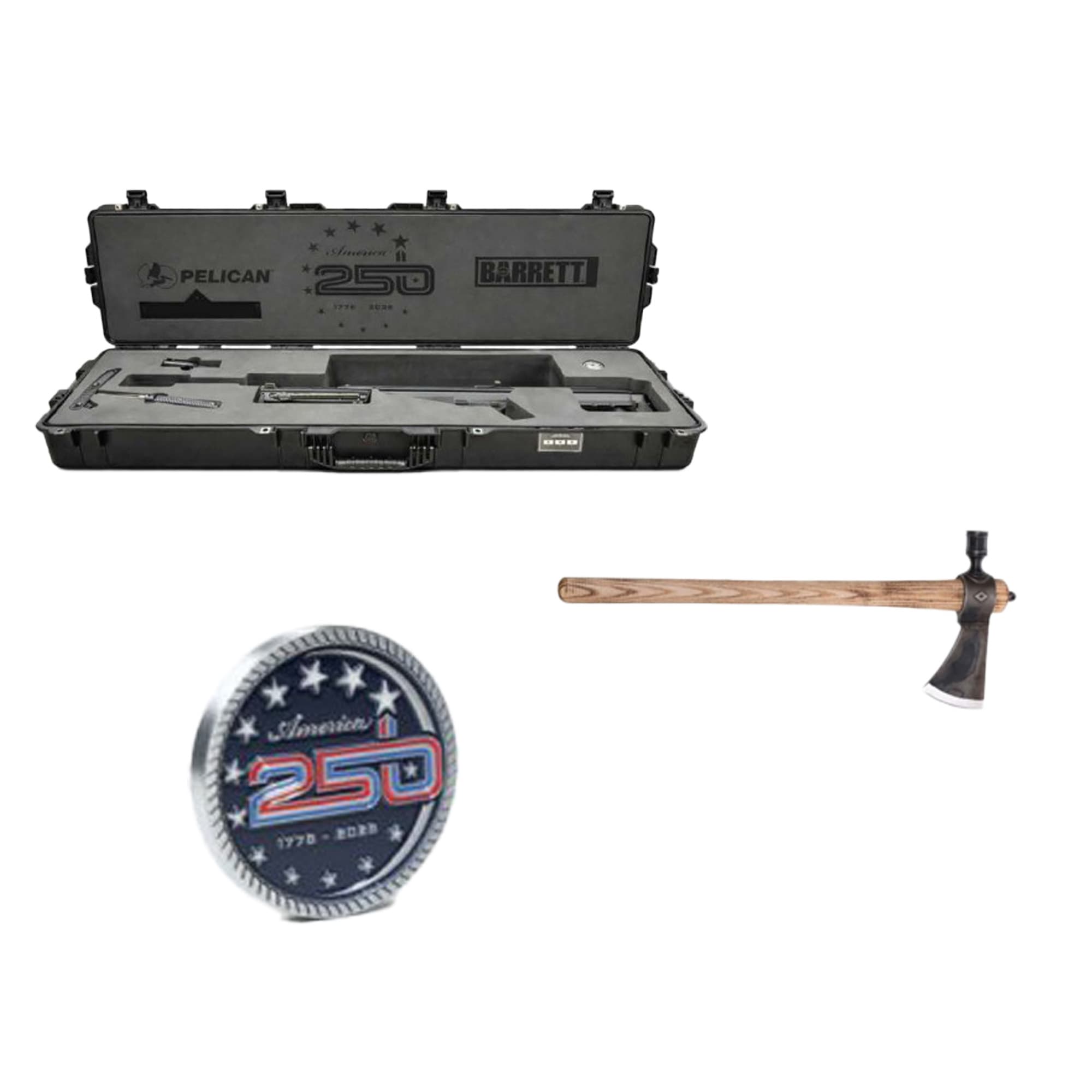 The Barrett Model 82A1 America 250 Series Anniversary Edition is a rare and extraordinary collector's firearm celebrating 250 years of American heritage, combining legendary long-range performance with a truly exclusive package that no serious collector or Barrett enthusiast will want to miss. Chambered in the devastating .50 BMG cartridge and fitted with a 20-inch barrel with a 1:15 twist rate, this semi-automatic rifle delivers the same unmatched accuracy, raw power, and proven reliability that has made the Model 82A1 the gold standard of long-range precision rifles for military, law enforcement, and civilian shooters worldwide. Every detail of this anniversary edition has been thoughtfully curated, arriving complete with an RMJ Tactical Patriot Tomahawk — a handcrafted American-made tactical tool of exceptional quality — alongside an exclusive commemorative challenge coin and a rugged Pelican hard case for secure storage and transport. The right-handed operating controls, mil-spec construction, and Barrett's renowned craftsmanship ensure this rifle is as capable in the field as it is impressive on display. Whether destined for the range or a prized position in a collection, the Barrett Model 82A1 America 250 Series Anniversary Edition is a once-in-a-generation firearm that honors American history while delivering world-class performance.