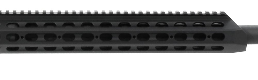 This modular Barrett MRAD .260 Remington Rifle System features a black folding stock with adjustable cheekpiece, 24" fluted barrel, ambidextrous magazine release, single button length of pull adjustment, trigger module removable without tools, front-loading barrel design for caliber changes.
