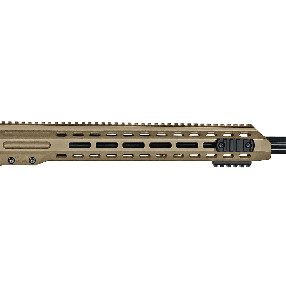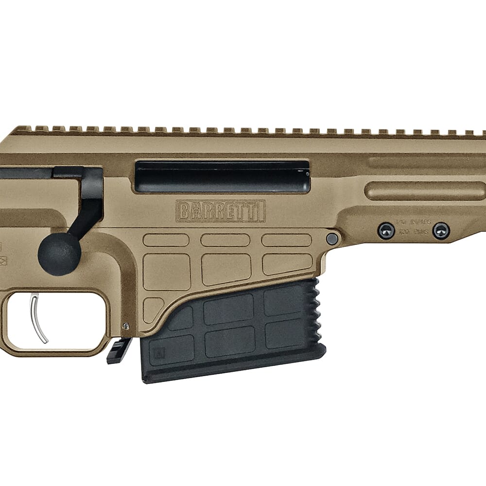 Integrated into the Barrett MRAD rifle’s 7000 series aluminum upper receiver is a Picatinny M1913 rail with 20 MOA taper. At 21.75 inches, the rail offers plenty of space for in line night vision devices. Configurable side and bottom rails allow for mounting a number of other accessories.