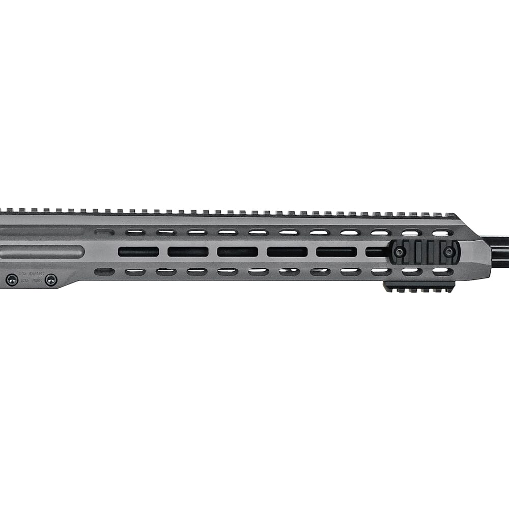 Integrated into the Barrett MRAD rifle’s 7000 series aluminum upper receiver is a Picatinny M1913 rail with 20 MOA taper. At 21.75 inches, the rail offers plenty of space for in line night vision devices. Configurable side and bottom rails allow for mounting a number of other accessories.