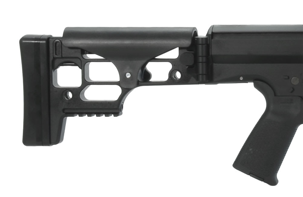 The Barrett MRAD rifle’s stock is foldable for enhanced portability yet locks in as solid as a fixed stock rifle, creating a rigid platform for consistent firing. When folded, the stock latches around the bolt handle for added security during transport. Because the stock folds to the bolt handle side of the action, the rifle is the same width overall, folded or extended. Made of a temperature resistant polymer, the adjustable cheek piece also offers a consistent rifle to user contact point. The rifle’s length of pull can be set to five different positions with the push of a single button. From its multi-positional quick-detach sling sockets to the Barrett Multi-Role Brown color of the rifle that blends into any environment-every detail of the Barrett MRAD has been carefully designed to create one thing: a high-performance rifle you can truly make your own.