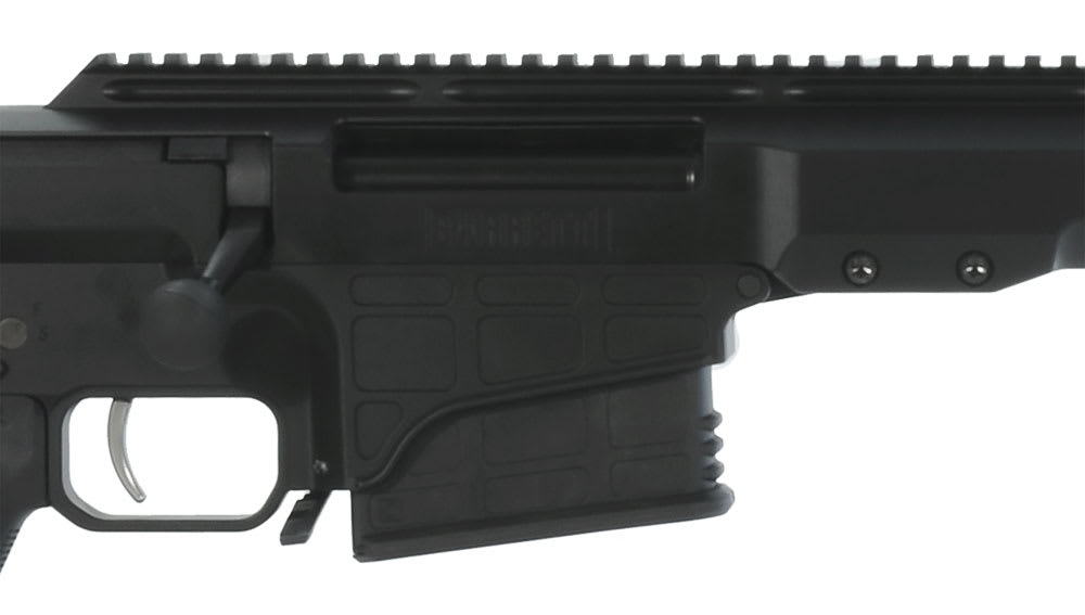 Integrated into the Barrett MRAD rifle’s 7000 series aluminum upper receiver is a Picatinny M1913 rail with 20 MOA taper. At 21.75 inches, the rail offers plenty of space for in line night vision devices. Configurable side and bottom rails allow for mounting a number of other accessories.