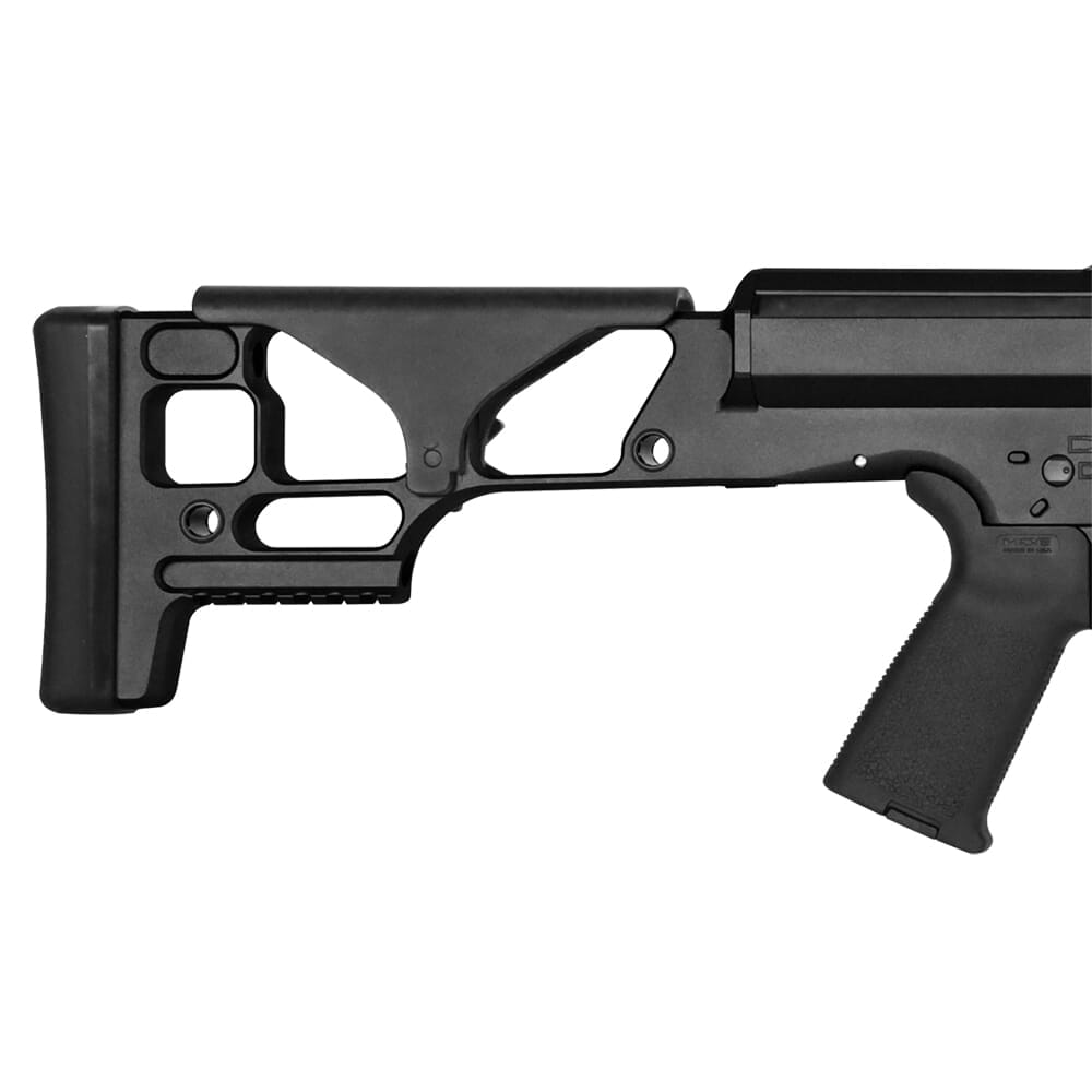 Barrett’s MRAD Single Mission Rifle or SMR delivers the same long-range performance of the standard MRAD in a simplified and more affordable package. The SMR differs from the MRAD in two ways: the buttstock is fixed and rifle is confined to a single caliber, as opposed to the MRAD’s folding stock and multi-caliber capabilities. The SMR’s streamlined design also provides a slimmer and lighter rifle, shaving off almost 2 ½ pounds and reducing the overall length by 1-inch. Aside from these minor differences, the SMR is virtually identical to the MRAD, utilizing 90% of the same parts as well as sharing a precise .75 MOA accuracy guarantee. Another feature celebrated by both the SMR and MRAD is a high level of end-user customization. A flattop picatinny rail allows an optic of choice to be mounted, and ample rail space accommodates the use of clip-on night vision and thermal devices. The SMR’s non-folding stock can also be finely tuned to the user’s preference of cheek-height, and additional spacers can be installed to fit the user’s desired length-of-pull.