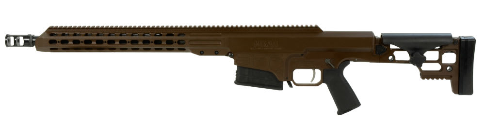 The Barrett MRAD rifle's stock is foldable for enhanced portability yet locks in as solid as a fixed stock rifle, creating a rigid platform for consistent firing. When folded, the stock latches around the bolt handle for added security during transport. Because the stock folds to the bolt handle side of the action, the rifle is the same width overall, folded or extended. Made of a temperature resistant polymer, the adjustable cheek piece also offers a consistent rifle to user contact point. The rifle's length of pull can be set to five different positions with the push of a single button. From its multi-positional quick-detach sling sockets to the Barrett Multi-Role Brown color of the rifle that blends into any environment-every detail of the Barrett MRAD has been carefully designed to create one thing: a high-performance rifle you can truly make your own.