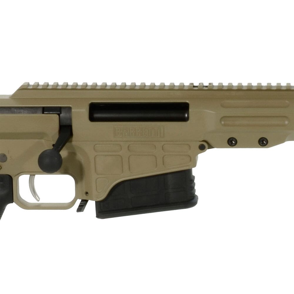 Integrated into the Barrett MRAD rifle’s 7000 series aluminum upper receiver is a Picatinny M1913 rail with 20 MOA taper. At 21.75 inches, the rail offers plenty of space for in line night vision devices. Configurable side and bottom rails allow for mounting a number of other accessories.