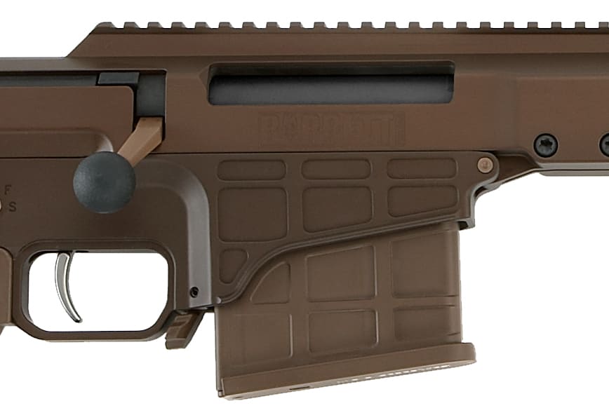 The Barrett MRAD also boasts Barrett's new trigger module that is easily accessed for maintenance, adjustment, and replacement. This match grade trigger is drop fire proof and combat ready. The thumb operated safety can be configured for left or right hand operation. The ambidextrous magazine release can be used intuitively while retaining a firing grip and cheek weld.