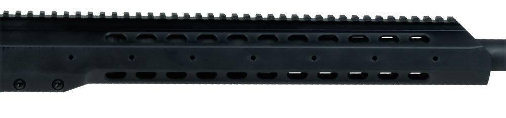 Integrated into the Barrett MRAD rifle’s 7000 series aluminum upper receiver is a Picatinny M1913 rail with 20 MOA taper. At 21.75 inches, the rail offers plenty of space for in line night vision devices. Configurable side and bottom rails allow for mounting a number of other accessories.