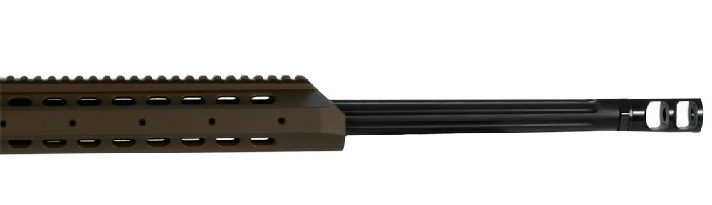 Integrated into the Barrett MRAD rifle’s 7000 series aluminum upper receiver is a Picatinny M1913 rail with 30 MOA taper. At 21.75 inches, the rail offers plenty of space for in line night vision devices. Configurable side and bottom rails allow for mounting a number of other accessories.
