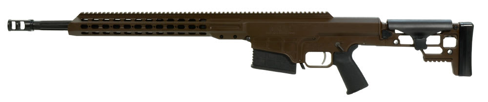 The Barrett MRAD rifle's stock is foldable for enhanced portability yet locks in as solid as a fixed stock rifle, creating a rigid platform for consistent firing. When folded, the stock latches around the bolt handle for added security during transport. Because the stock folds to the bolt handle side of the action, the rifle is the same width overall, folded or extended. Made of a temperature resistant polymer, the adjustable cheek piece also offers a consistent rifle to user contact point. The rifle's length of pull can be set to five different positions with the push of a single button. From its multi-positional quick-detach sling sockets to the Barrett Multi-Role Brown color of the rifle that blends into any environment-every detail of the Barrett MRAD has been carefully designed to create one thing: a high-performance rifle you can truly make your own.
