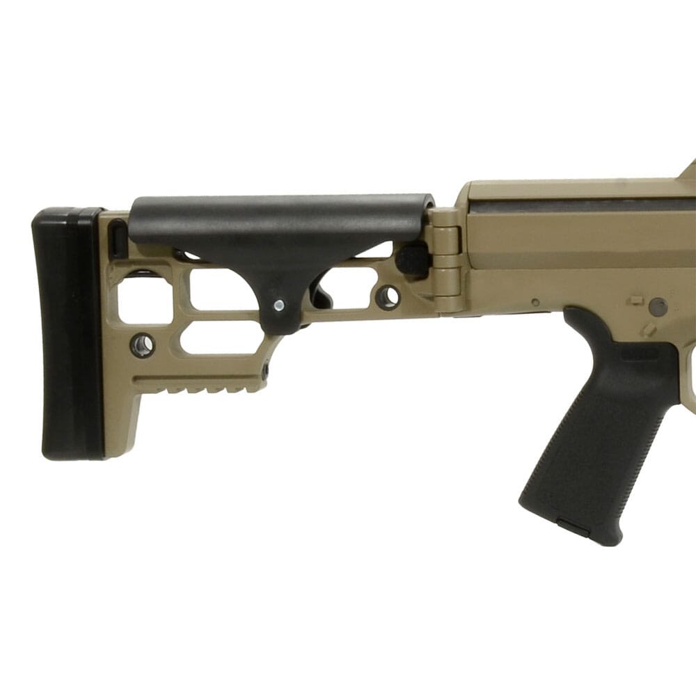 The Barrett MRAD rifle???s stock is foldable for enhanced portability yet locks in as solid as a fixed stock rifle, creating a rigid platform for consistent firing. When folded, the stock latches around the bolt handle for added security during transport. Because the stock folds to the bolt handle side of the action, the rifle is the same width overall, folded or extended. Made of a temperature resistant polymer, the adjustable cheek piece also offers a consistent rifle to user contact point. The rifle???s length of pull can be set to five different positions with the push of a single button. From its multi-positional quick-detach sling sockets to the Barrett Multi-Role Brown color of the rifle that blends into any environment-??every detail of the Barrett MRAD has been carefully designed to create one thing: a high-performance rifle you can truly make your own.