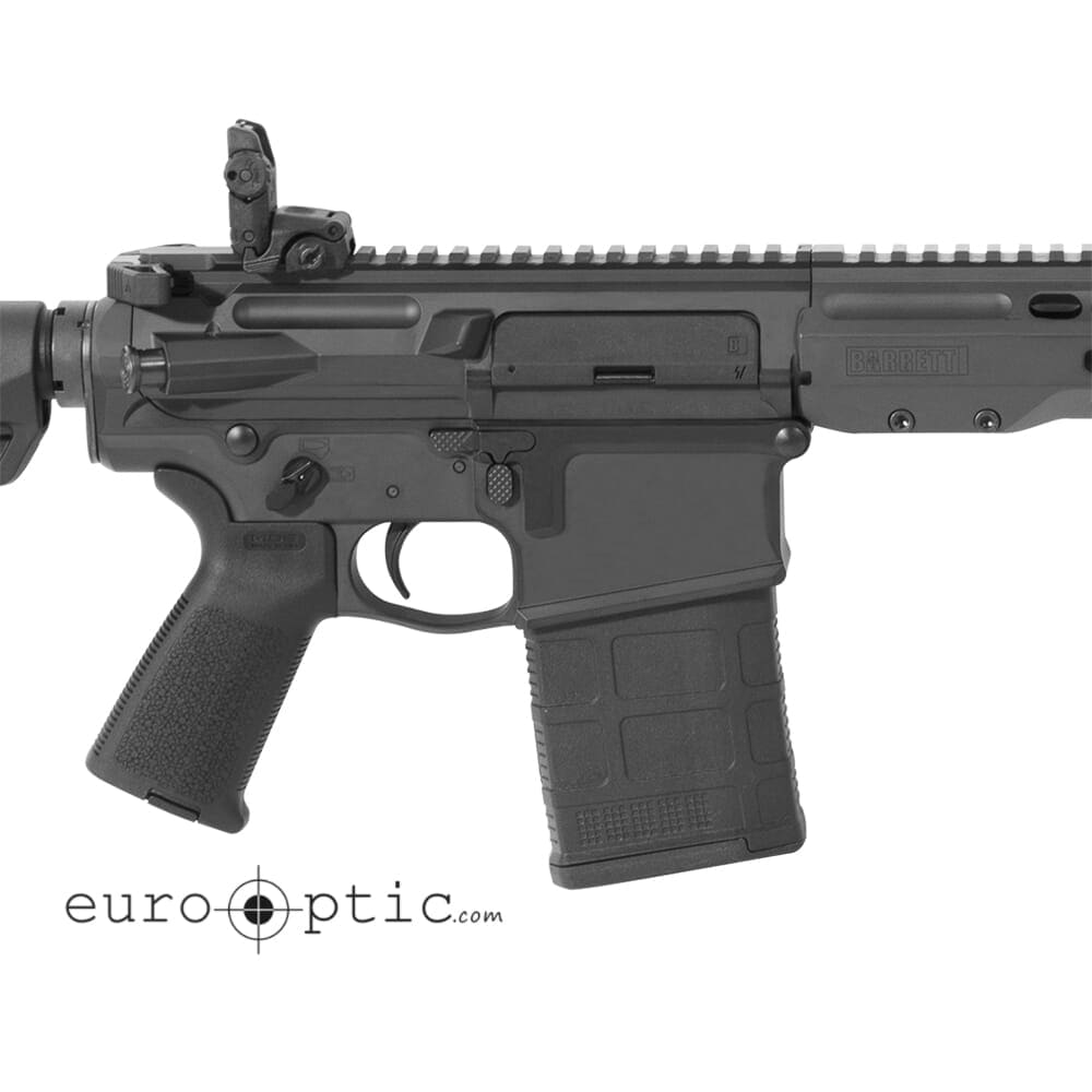 Barrett’s REC10 Rifle was developed over the course of years to ensure the utmost reliability, performance, and comes standard with exclusive features. The bolt carrier is outfitted with the Diamond-Like Carbon Coating (DLC) which provides excellent resistance to corrosion as well as a low coefficient of friction. The REC10’s trigger is the ALG Defense QMS, this trigger eliminates the grittiness associated with stock triggers but retains their renowned reliability. The trigger-guard has also been enlarged to accommodate usage even when wearing gloves. Other features of the Barrett REC10 includes a high degree of customization. A full length flattop picatinny rail allows for the installation of a magnified or unmagnified optic, and the ample rail space accommodates use with clip-on night vision or thermal devices. The handguard features multiple M-LOK attachment points for the fitting of tactical lights/lasers, fore-grips, and other accessories. In addition, the REC10 is fully ambidextrous, with the safety selector, bolt release, and mag catch located on both sides of the weapon.