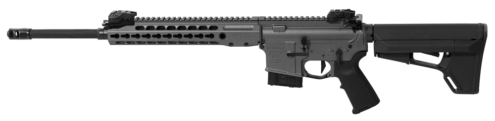 The lightweight, semi-automatic Rec7 Gen II operates on a one-piece 14-7 stainless steel piston with two position gas plug. This Barrett REC7 Gen II 6.8 SPC rifle features an 18" DMR, grey receiver, Magpul MOE stock, Barrett muzzle brake, SDE defense trigger, flip up iron sights, KeyMod rail attachment, Barrett handguard, and one 20 round magazine.