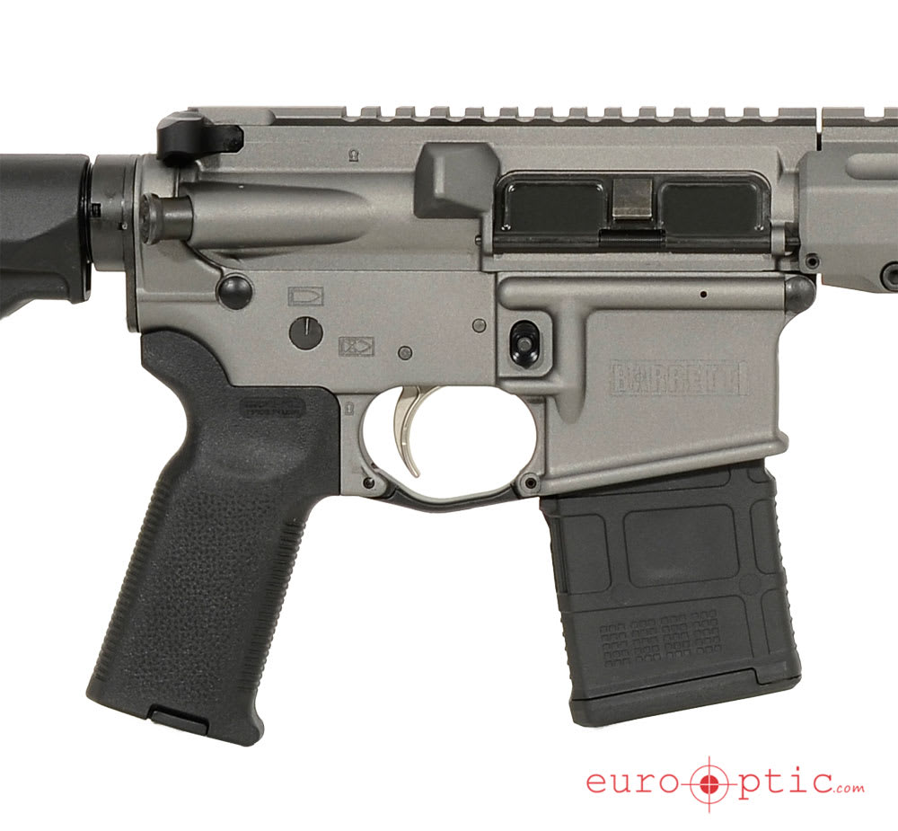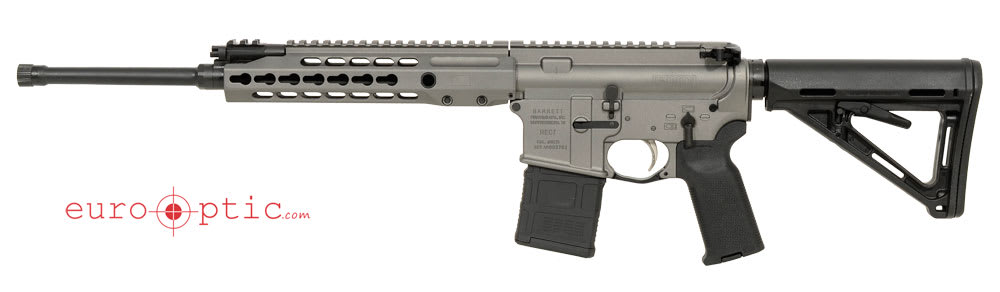 The lightweight, semi-automatic REC7 Gen II uses a one-piece 17-4 stainless steel piston with two position gas plug. This Barrett REC7 Gen II 5.56 NATO Rifle features a 16" flyweight barrel, grey receiver, Magpul MOE stock, thread protector, ALG Defense trigger, Barrett handguard KeyMod rail attachment, and one 20 round magazine.