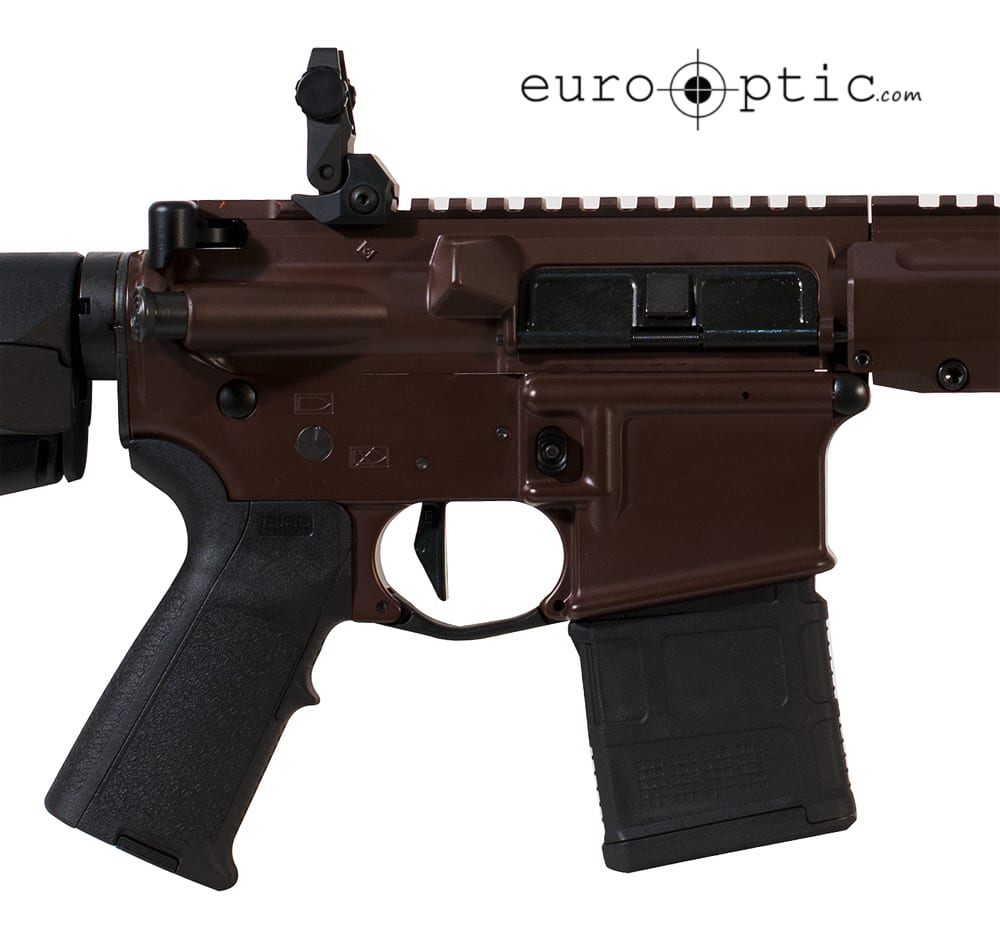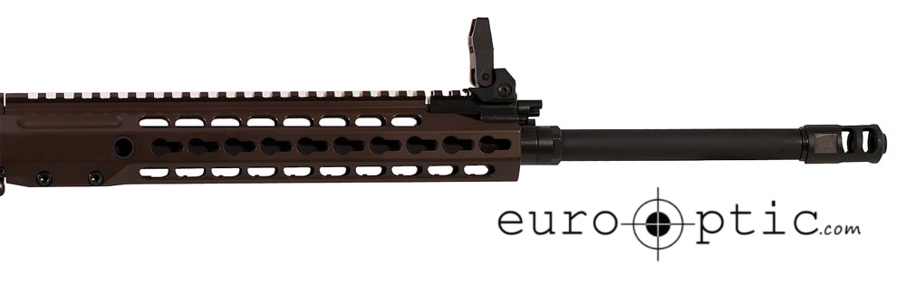 The lightweight, semi-automatic REC7 Gen II uses a one piece 17-4 stainless steel piston with two position gas plug. This 5.56 NATO Barrett REC7 Gen II Rifle features an 18" DMR barrel, multi role brown Magpul MOE stock, Barrett muzzle brake, keymod rail attachment, SDE trigger, flip up iron sights, and one 20 round magazine.