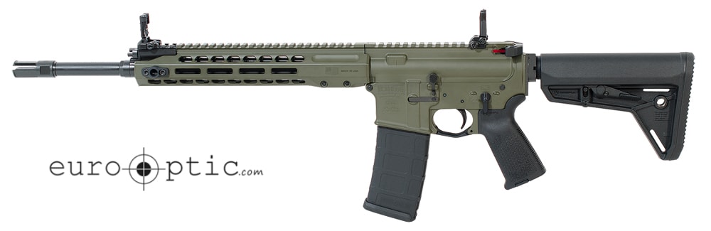 The Barrett REC7 rifle’s forged 7075 aluminum upper and lower receivers are type 3 hardcoat anodized. The lower houses an ultra dependable, mil-spec single stage trigger. The upper supports a free-floated, 16-inch hammer forged, chrome-lined barrel with M4 feed ramps machined into both the receiver and the barrel extension. A mil-spec A2 flash hider protects the muzzle.