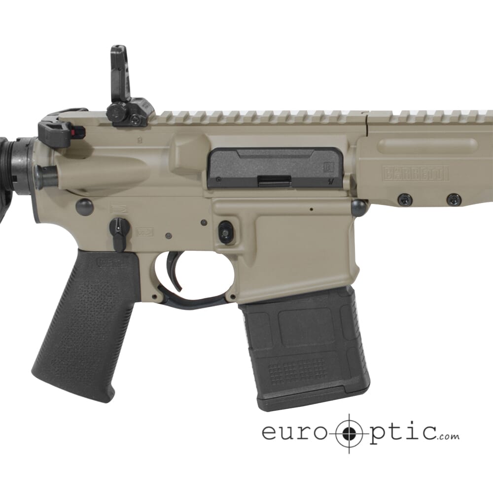 The Barrett REC7 rifle’s forged 7075 aluminum upper and lower receivers are type 3 hardcoat anodized. The lower houses an ultra dependable, mil-spec single stage trigger. The upper supports a free-floated, 16-inch hammer forged, chrome-lined barrel with M4 feed ramps machined into both the receiver and the barrel extension. A mil-spec A2 flash hider protects the muzzle.
