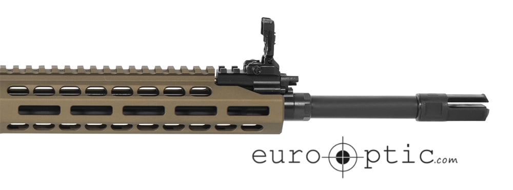 At the heart of the system is the nitrided, two-position (suppressed/unsuppressed) gas regulator that retains the piston. The piston can be accessed through the gas block without removing the handguard, so optical sights or laser devices do not need to be re-zeroed after routine maintenance. The top of the gas block also has an integral 1913 rail, extending the rail length for mounting accessories or sights. The handgaurd features M-LOK attachment points at the 3, 6, and 9 o'clock positions.