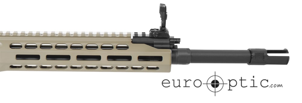 At the heart of the system is the nitrided, two-position (suppressed/unsuppressed) gas regulator that retains the piston. The piston can be accessed through the gas block without removing the handguard, so optical sights or laser devices do not need to be re-zeroed after routine maintenance. The top of the gas block also has an integral 1913 rail, extending the rail length for mounting accessories or sights. The handgaurd features M-LOK attachment points at the 3, 6, and 9 o'clock positions.