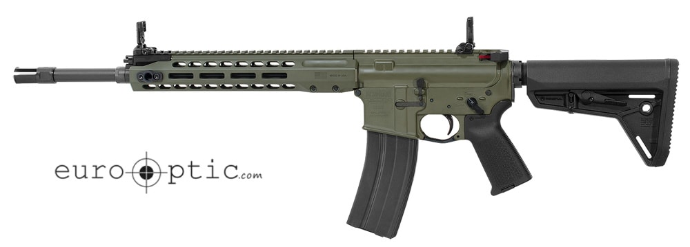 The Barrett REC7 rifle’s forged 7075 aluminum upper and lower receivers are type 3 hardcoat anodized. The lower houses an ultra dependable, mil-spec single stage trigger. The upper supports a free-floated, 16-inch hammer forged, chrome-lined barrel with M4 feed ramps machined into both the receiver and the barrel extension. A mil-spec A2 flash hider protects the muzzle.