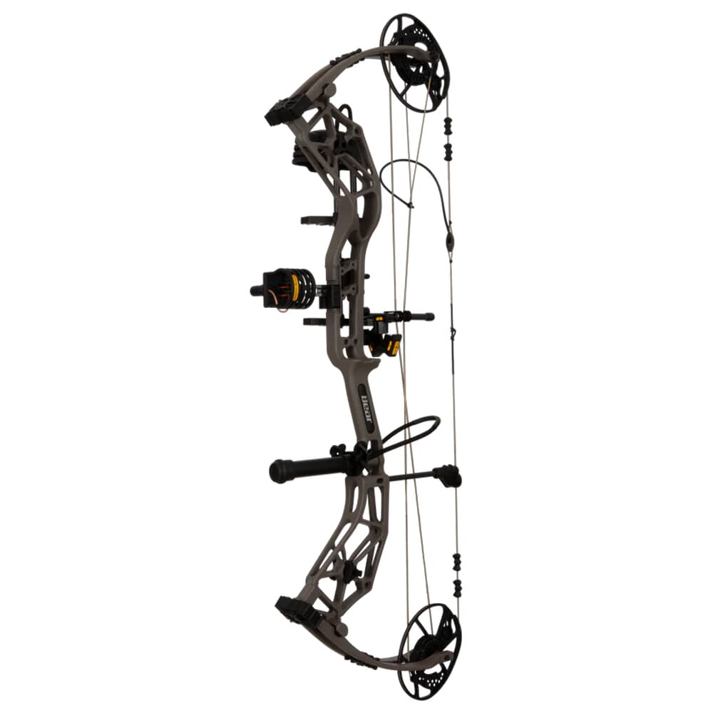 The Bear Alaskan XT RTH LH60 Stone Bow AV46A731S6L is a high-performance ready-to-hunt package designed for left-handed archers. Featuring a 33-inch axle-to-axle length, a comfortable 6.25-inch brace height, and a versatile draw length range of 25-30 inches, this bow is perfect for various shooting scenarios. The DHC-XR cam system delivers speeds up to 335 FPS with an 80% let-off, ensuring smooth and comfortable shooting. The package includes a Trophy Ridge integrated 4-pin sight, IMS Whisker Biscuit V, 5-Spot quiver, stabilizer, peep sight, and D-loop, making it ready for immediate use.