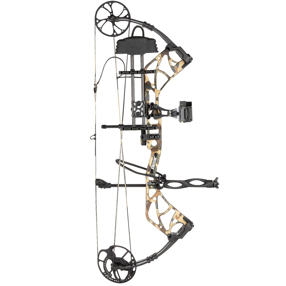 The Whitetail Legend Compound Bow pays homage to the classic Whitetail bow introduced in the 1970’s by Bear Archery founder Fred Bear. It ships ready to hunt with a wide assortment of Trophy Ridge accessories, including a Volt 5-pin sight, Quick Shot Whisker Biscuit, Static 6” Stabilizer, No-Tie Peep Sight, and D-Loop. The Whitetail Legend itself delivers one of the most solid back wall experiences available every time you draw back, and send arrows downrange at a blazing 320 feet per second upon release. The Whitetail Legend also has an axel-to-axel length of a mere 32 inches, making it easy to maneuver in confined spaces such as a tree stand of hunting blind. Other features include a KillerWave limb dampening device seriously cuts down on vibration and shock, and Headhunter Contraband Bowstrings offer reliable performance in harsh conditions.