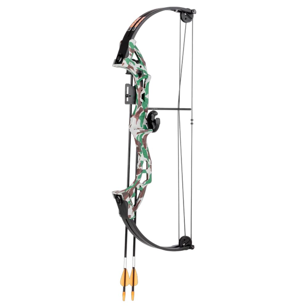 The Bear Brave RH Camo Bow AYS300CR is the perfect introductory compound bow for young archers. Featuring a 26-inch axle-to-axle length and a draw weight range of 10 to 25 lbs, this bow is designed for ages eight and older. The Brave comes ready to shoot with two Safetyglass arrows, a Whisker Biscuit arrow rest, a 1-pin sight, an arrow quiver, and an armguard. The camo finish adds a stylish touch, making it ideal for young archers looking to follow in the footsteps of Mom and Dad.