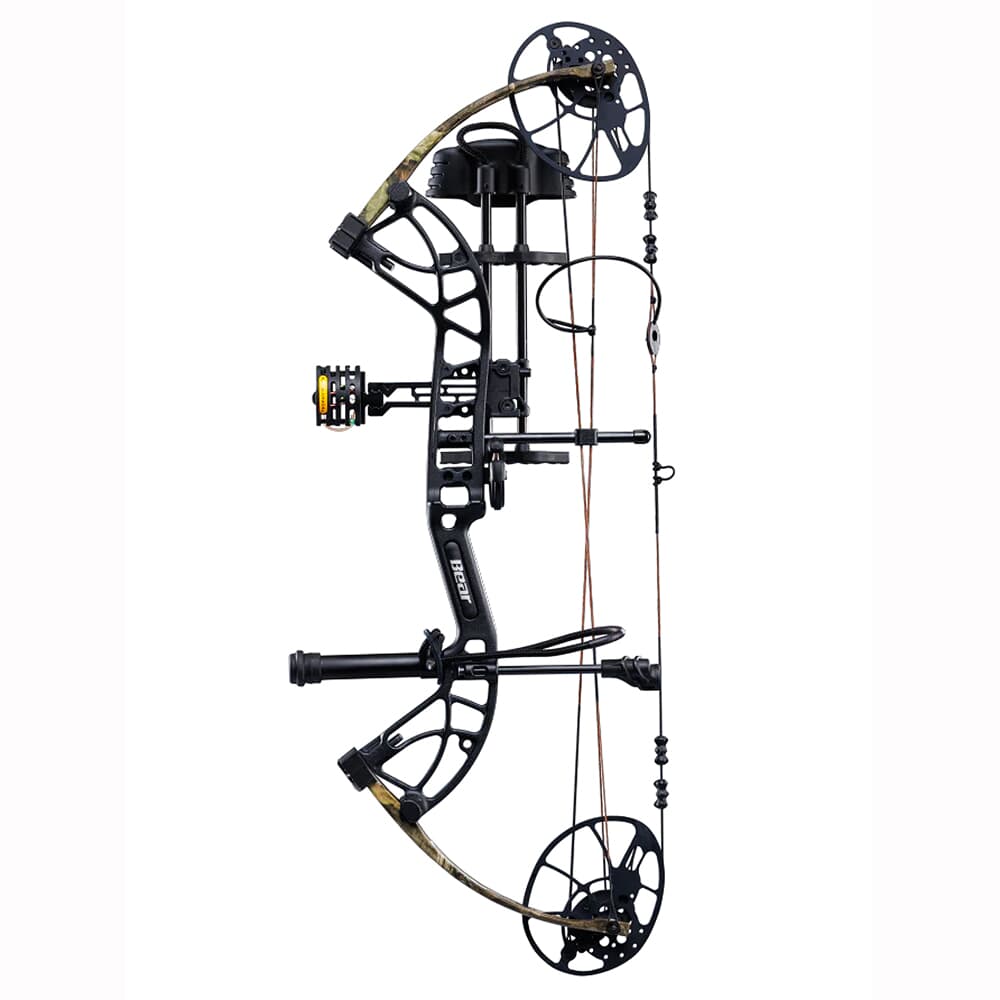 The Bear Cruzer G4 RTH RH70 Black/Mossy Oak Roots Bow AV54A210R7R is a versatile compound bow designed to accommodate both youth and adult archers. Weighing just 3.2 pounds, this bow offers unparalleled lightweight maneuverability without compromising on performance. With a generous 6.25-inch brace height and 29-inch axle-to-axle length, the Cruzer G4 strikes the perfect balance between stability and agility. Its impressive draw weight range of 10 to 70 pounds and draw length range of 14 to 30 inches ensure that it can be tailored to suit a wide range of archers. The Ready-To-Hunt package includes a V-Biscuit rest, premium 4-pin sight, 5-Spot arrow quiver, stabilizer, Radical peep sight, and wrist sling.