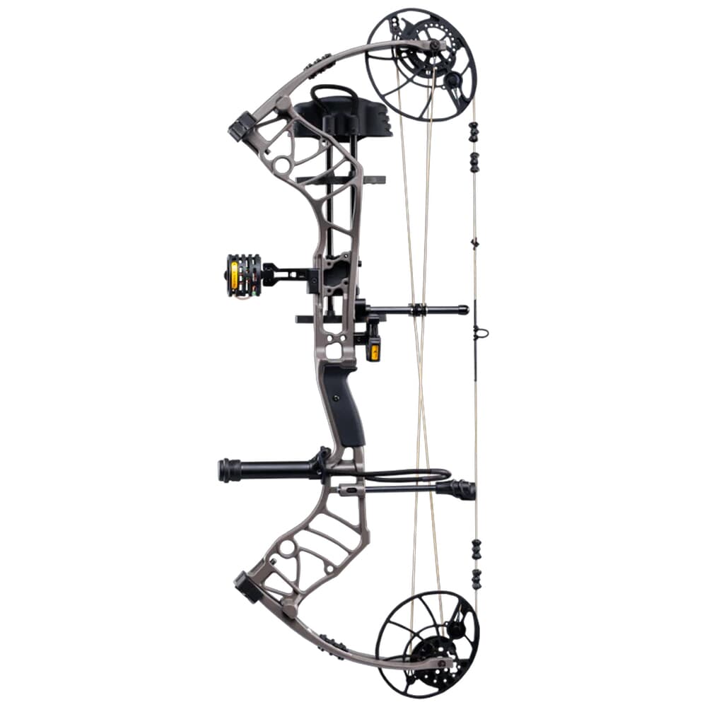 The Bear Legend 30 RTH RH70 Stone Bow AV56A611S7R is a high-performance compound bow designed for serious hunters. Featuring a compact 30-inch axle-to-axle length and a forgiving 6.5-inch brace height, this bow offers exceptional maneuverability and accuracy. The DHC-XR Hybrid Cam system provides a smooth draw cycle and speeds up to 320 FPS, making it ideal for hunting and target shooting. The Ready-To-Hunt package includes Trophy Ridge accessories such as an IMS V-Biscuit rest, Picatinny-mounted 4-pin sight, 5-arrow quiver, stabilizer, peep sight, and wrist sling, ensuring you have everything you need for a successful hunt.